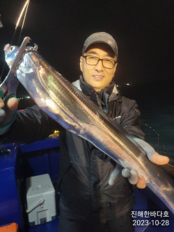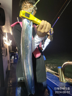 안녕하세요~ 진해한바다호 입니다^^오늘도 한바다호를 찾아주신 조우님들과 함께준내만 갈치 열낚 즐낚 하시며 손맛 보고왔습니다^0^계속해서 갈치와 고등어들로 손맛보시다 후반 예민한 입질에 빠져버리는 경우도 많았습니다~ 그럼에도 감을 잡으신 조우님들께서는 연타로 올려주시고전날에 비해 사이즈나 조과는 아쉬운 마음이 들지만초보조우님들께서도 쭉쭉 당기며 째고들어가는 갈치들로 찐한 손맛 보시며 즐길수 있었습니다^0^시원하게 째고가는 찐한 손맛보러 계속해서 달립니다~~ 준내만 갈치낚시 "진해한바다호" 와 함께해요~!★ 진해한바다호 평일,주말 매일 출조합니다~! ★# 한분의 조우님도 소중히 생각하는 한바다호입니다^^< 출조안내 >● 준내만갈치낚시- 시간 : 오후 5시 30분 출항 ~ 오전 3시 전후 입항- 선비 : 10만원- 준비사항 ▶ 로드 : 한치대,지깅대,타이라바대,문어대,이카메탈대 등30호이상 봉돌사용이 가능한 로드(내만갈치대X, 연질한치대X, 심해갈치대X)▶ 릴 : 수심체크베이트릴 (원줄: 합사 1호 / 국방색)또는 스피닝릴 2500번~3000번[채비]▶ 텐빈(편대바늘채비) : 편대 20cm 이상,바늘 2호,고리봉돌 20호~30호,눈알집어등▶ 텐야 : 80g~150g▶ 메탈 (지깅) : 80g ~ 150g , 눈알집어등 ▶ 그외 : 꽁치(크게 썰어진것),장갑,가위,쿨러*대장쿨러,피크닉쿨러 절대사절입니다. 35L 이하로 준비해주세요^^< 예약 및 문의사항 > 한바다호 예약안내 ☎ 예약문의 : 010-7608-7016● 홈페이지 바로예약 : http://hanbada.sunsang24.com/
