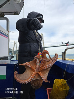 안녕하세요 진해한바다호 입니다^^오늘도 한바다호를 찾아주신 조우님들과 함께묵직~하게 올라오는 돌문어 찐한 손맛 보시며 열낚 즐낚 하고 왔습니다~!포인트를 한번 흘러갈때마다여기저기 굵직굵직 씨알좋은 문어들을힘차게 뜯어올려주시고계속해서 쭉쭉 붙어주는 문어들로 찐한 손맛 보시며열낚 즐낚해주시다 기분좋게 마무리 할 수 있었습니다^0^계속해서 달립니다~~묵직~하게 올라오는 돌문어의 짜릿한 손맛!!"진해문어낚시" 한바다호와 함께해요 ♬※ 내일(11/23)은 마감되었습니다!※ 월요일 몇 자리 예약 가능합니다^0^★ 진해한바다호 평일,주말 매일 출조합니다~! ★# 한분의 조우님도 소중히 생각하는 한바다호입니다^^< 출조안내 >● 진해 문어낚시 - 시간 : 오전 6시 30분 출항 ~ 오후 1시 30분 철수 - 선비 : 7만원 - 준비사항 : 낚시대,릴,채비(왕눈이에기,고리봉돌30호,양핀도래),얼음,쿨러,신분증< 예약 및 문의사항 > 한바다호 예약안내 ☎ 예약문의 : 010-7608-7016● 홈페이지 바로예약 : http://hanbada.sunsang24.com/