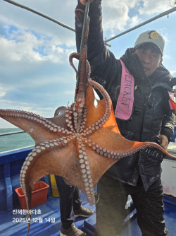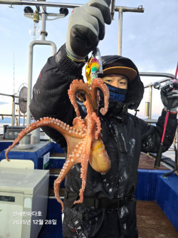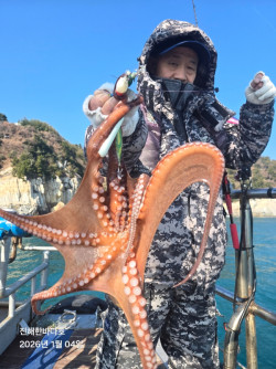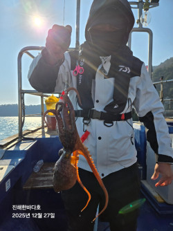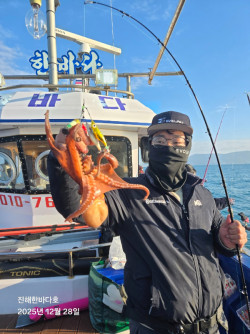 안녕하세요 진해한바다호 입니다^^계속해서 한바다호를 찾아주신 조우님들과 함께묵직~하게 올라오는 돌문어 찐한 손맛 보시며 즐기고 왔습니다~!몇일 간 춥고 만족스럽지 못한 조과가 이어졌지만오늘은 다행히 날씨도 많이 풀리고 포인트를 한번 흘러갈때마다 여기저기 씨알좋은 문어들을 힘차게 뜯어올려주셨습니다~!계속해서 쭉쭉 붙어주는 문어들로 전원 찐한 손맛 보시다기분좋게 마무리 할 수 있었습니다^0^내일도 계속해서 달립니다~~묵직~하게 올라오는 돌문어의 짜릿한 손맛!!"진해문어낚시" 한바다호와 함께해요 ♬★ 진해한바다호 평일,주말 매일 출조합니다~! ★# 한분의 조우님도 소중히 생각하는 한바다호입니다^^< 출조안내 >● 진해 문어낚시 - 시간 : 오전 6시 30분 출항 ~ 오후 1시 30분 철수 - 선비 : 7만원 - 준비사항 : 낚시대,릴,채비(왕눈이에기,고리봉돌30호,양핀도래),얼음,쿨러,신분증< 예약 및 문의사항 > 한바다호 예약안내 ☎ 예약문의 : 010-7608-7016● 홈페이지 바로예약 : http://hanbada.sunsang24.com/