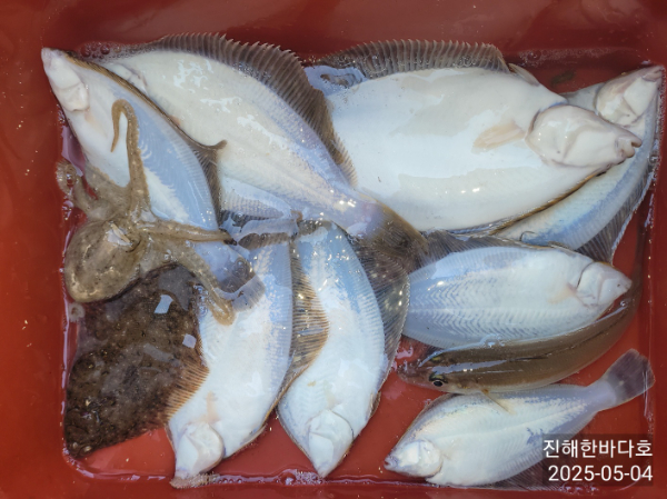 초보 조우님들께서도 열심히 바닥을 쿵쿵 찍어주시며 내일도 계속해서 달립니다~!! 손끝으로 전해지는 도다리낚시의 짜릿한 손맛♬ "진해한바다호"와 함께해요~~~